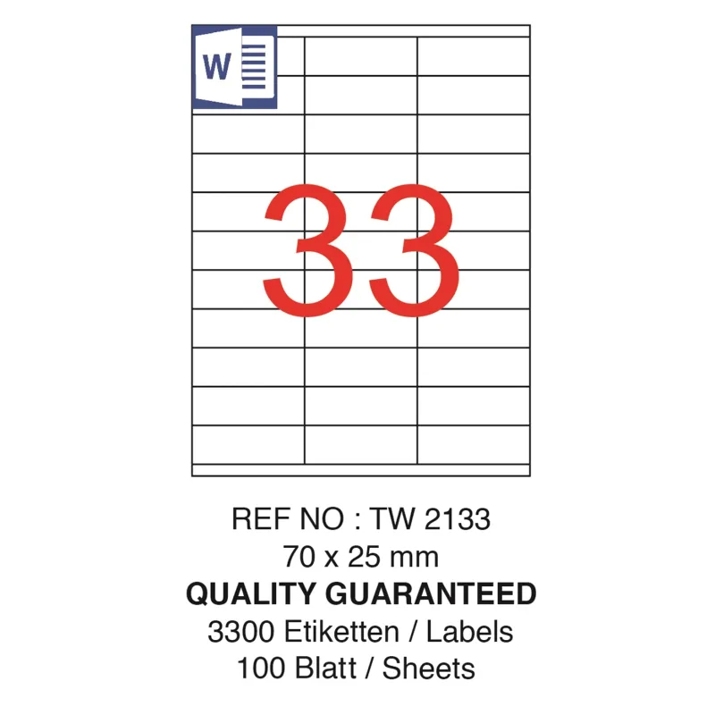 TANEX LASER ETİKET TW-2133 70X25 mm(33) 100 lü